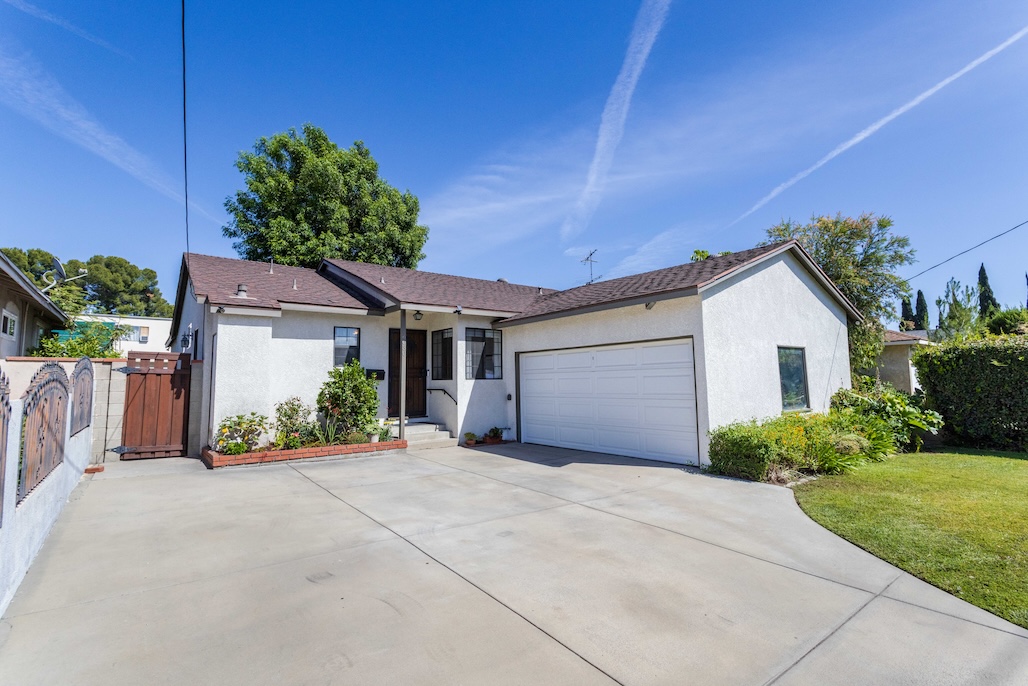Welcome to a home where classic character meets contemporary refinement. This 3-bedroom, 2-bathroom residence offers 1,310 sqft of thoughtfully updated living space situated on a quaint lot. This home has been tastefully refined to provide a truly turn-key experience for the modern homeowner. Step into the refreshed living room, where exposed beams, added crown molding, and a striking red brick fireplace combine with a neutral, modern color palette for a warm yet airy ambiance. New vinyl flooring enhances the space, offering both durability and style. The updated galley kitchen features granite countertops, recessed lighting, and a convenient laundry area at the far end. With its sleek finishes and functional layout, this kitchen is ready for both everyday living and entertaining. The open concept flows easily to the outdoors, where a charming backyard awaits. Enjoy the ample greenery, including a beautiful mature tree, and a lawn with a chicken coup, a perfect setting for relaxation or gatherings. Additional highlights include an updated electrical panel and a 2-car garage. Every detail, from the thoughtful finishes to the serene color palette, has been curated to provide a modern, fresh living experience. Close to the lively NoHo West Shopping Center, you’ll enjoy instant access to Trader Joe’s, LA Fitness, cinemas, Starbucks, and an array of dining options. Also positioned for your ultimate convenience, this home is located just moments from the Burbank Empire Center and the neighborhood Target, making daily errands a breeze. Commuters will appreciate the easy access to major freeways, while frequent travelers are just minutes away from the Hollywood Burbank Airport.