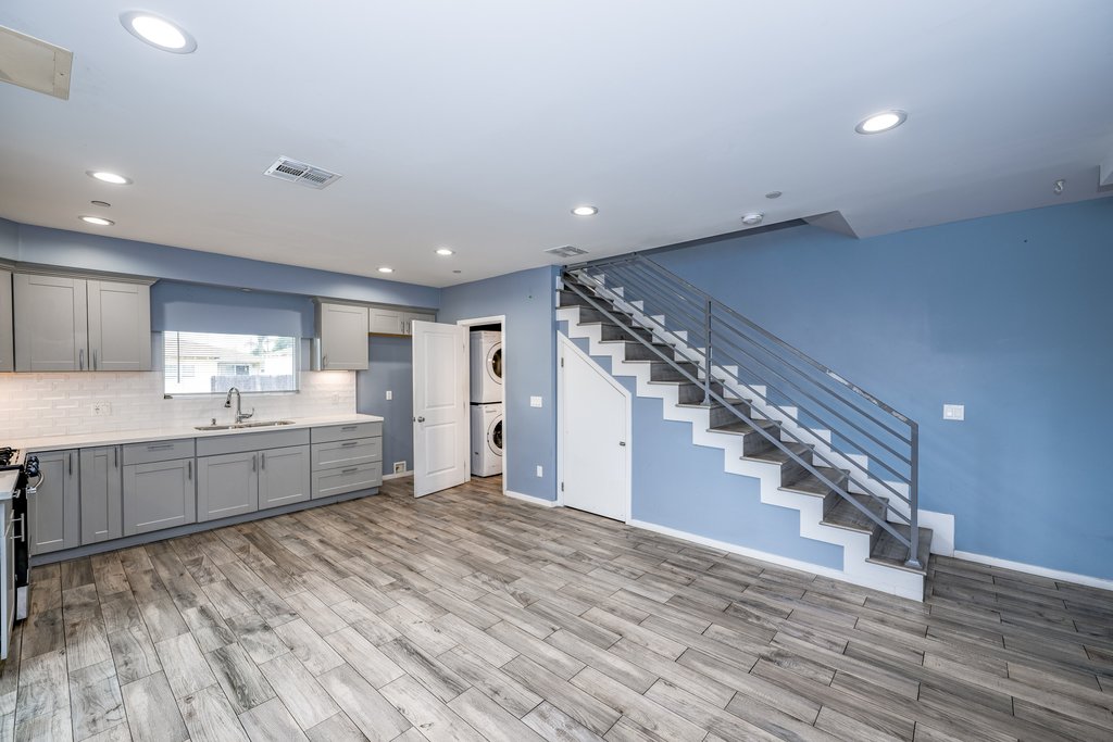Step into the spring season with this stunning lease! Offering 3 spacious bedrooms, 2 modern bathrooms, and a generous 1,019 sq. ft. of living space, this unit perfectly blends comfort and contemporary style. From the moment you walk in, you’ll notice the elegant wood-look flooring, recessed lighting, and sleek, modern design. The open-concept kitchen features stylish shaker cabinets with plenty of space, and flows seamlessly into the living area, which is perfect for entertaining or relaxing at home. Conveniently located off the kitchen is a laundry room with space-saving, stackable units. The primary suite is a true retreat, complete with a walk-in closet and a private balcony, ideal for enjoying your morning coffee or unwinding in the evening. Additional perks include two secured side-by-side covered parking spots and water utility is included for your convenience.