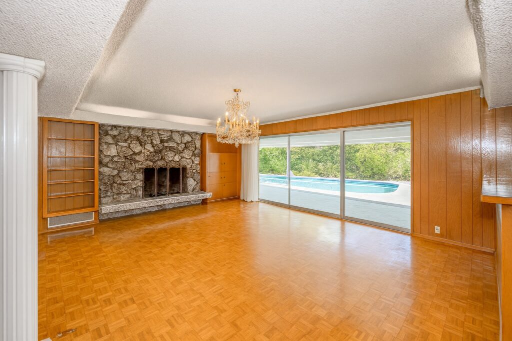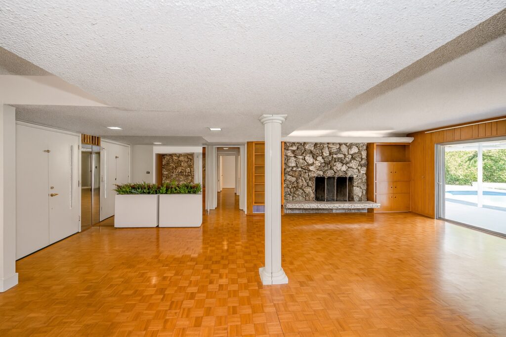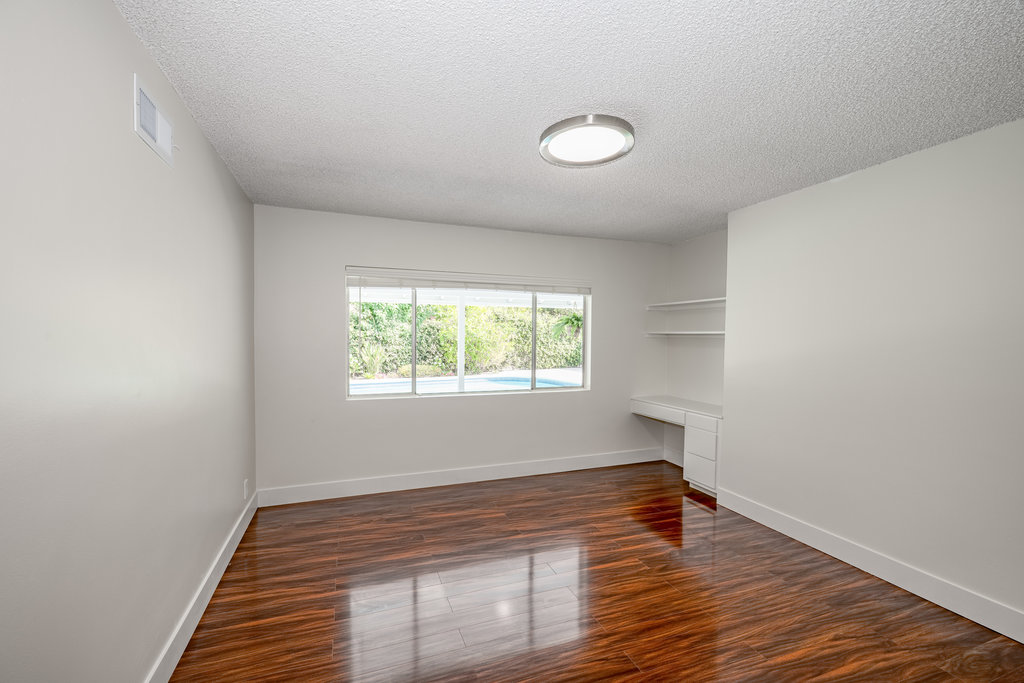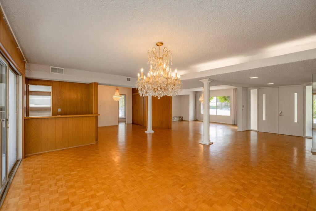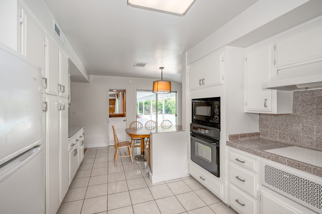Welcome to your dream home – a stunning Mid-Century Modern masterpiece that effortlessly blends timeless charm with contemporary comforts. Nestled on an expansive 11,646 sq ft corner lot, this 4-bedroom, 3.5-bath gem offers 2,729 sq ft of meticulously maintained living space, designed for both relaxation and entertainment. Step inside to reveal elegant Parquet flooring that flows seamlessly through the inviting living room and the cozy step-down family room. The home’s original character shines through large windows and sliding doors, bathing the interior in natural light and offering views of the lush outdoors. The spacious primary suite is a true sanctuary, complete with an en suite bathroom, abundant closet space, and direct access to the backyard and sparkling pool—a private oasis just steps away. The additional three bedrooms are generously sized, featuring built-in storage and ample closet space. A Jack-and-Jill en suite bathroom connects two of the bedrooms, while a pristine hallway bathroom adds both convenience and style. The heart of the home is the expansive kitchen, boasting a charming built-in breakfast nook overlooking the pool—a perfect spot to start your day. Entertain with ease in the large living room, complemented by a sophisticated wet bar. A dedicated laundry room, adjacent half bath, and extra storage space add to the home’s functionality. Outdoor living is a dream with a private patio off the dining area, ideal for alfresco dining or peaceful coffee breaks. The backyard showcases a glistening pool and a covered patio that spans the length of the home, creating an entertainer’s paradise. With ample parking in front of the garage and additional space for larger vehicles, convenience is key. Located in a highly sought-after, tranquil neighborhood, this property is just moments from Northridge Mall, home to Portos, Yard House, AMC Theaters, Starbucks, Dave & Busters, Macy’s, Gold’s Gym, and more. Experience the perfect fusion of serene living and vibrant city amenities in this exceptional Mid-Century Modern residence.